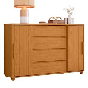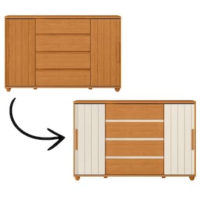 Características: Estrutura em MDP 2 portas 4 gavetas Puxadores em mdf revestidos Tampo de 25 mm Pés inclusos