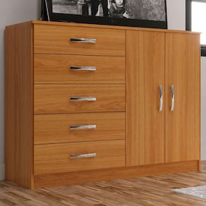O(a) Cômoda 2 Portas 5 Gavetas Cp254 Cinnamomo - Evidencia Móveis é produzido em MDP na escala de brilho Fosco, e possui um grau de dificuldade de montagem: Médio.