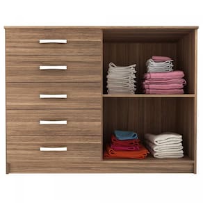 É fabricado 100% em MDP, conta com excelentes repartições e amplo espaço para você organizar roupas, calçados e objetos pessoais. Moderna e elegante tem 5 gavetas e 2 portas que proporcionam maior amplitude para organizar peças e objetos pessoais. Acabamento interno na cor branca, reúne harmoniosamente beleza, qualidade e durabilidade.