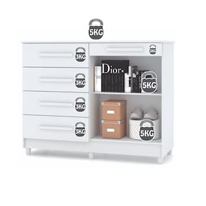 Peso Suportado Distribuído: 5 kg por Prateleira e 3 kg por Gaveta.