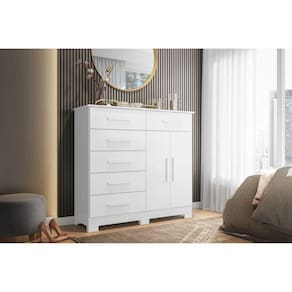 A Cômoda Xangai além de linda, é robusta e possui espaços funcionais. Sua composição conta com 6 gavetas com corrediças telescópicas e 2 portas com prateleiras. Seus puxadores em MDF revestidos, são mais resistentes e charmosos. Produto Montado: Sim Acabamento da Gaveta: Pintura UV Acabamento da Porta: Pintura UV Acabamento da Prateleira: Pintura UV Acabamento dos Pés: Pintura Altura dos Pés: 5 Altura Máxima dos Pés: 5.0000 Ambiente Principal: Quarto codigo_ean: 7908141230030 Complexidade da Montagem: Alta: deve ser montado por um montador especializado Cor: Branco Cor do Produto: Branco Cor Interna: Branco Escala de Brilho: Fosco Escala de Brilho da Gaveta: Fosco Escala de Brilho da Porta: Fosco Escala de Brilho da Prateleira: Fosco Gaveta com Chave: Não Itens Inclusos: 1 Cômoda, Manual de Montagem e Kit Ferragens Linha ou Coleção: Albatroz Manual de Montagem e Instalação: https://product-hub-prd.madeiramadeira.com.br/885975/documents/7ff663b6-a540-498d-ac22-b08a2565b6dd2806esquema165comodaxangai.pdf Material da Gaveta: MDP Material da Porta: MDP Material da Prateleira: MDP Material do Fundo: HDF Material do Puxador da Gaveta: MDF Material do Puxador da Porta: MDF Material dos Pés: ABS Material Principal: MDP Necessita Montagem: Sim Origem do Produto: Nacional Pés Reguláveis: Não Peso: 45,9 kg Peso Máximo por Gaveta: 5 kg Peso Máximo por Prateleira: 4 kg Possui Espelho: Não Possui Nichos: Não Possui Pés: 06 Possui Portas: Sim Possui Prateleiras: Sim Possui Rodízio: Não Quantidade de Gavetas: 06 Gavetas Quantidade de Prateleiras: 01 Prateleira Recomendações de Uso, Manutenção e Limpeza: Limpar com flanela ou pano macio seco, não utilizar produtos abrasivos, desengordurantes, álcool ou solvente. Não expor o produto diretamente à luz solar e à umidade. Sapatas Niveladoras: Não Sistema de Montagem: Parafusos, cavilhas e minifix Suporta Até (kg): 54 kg Tipo de Corrediça da Gaveta: Metálica Telescópica Tipo de Dobradiça/Corrediça da Porta: Metálica Tipo de Porta: Bater Tipo de Puxador da Gaveta: Externo Tipo de Puxador da Porta: Externo