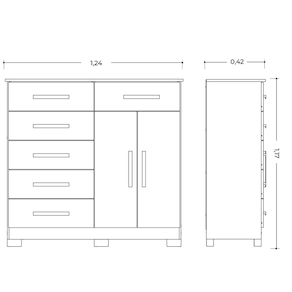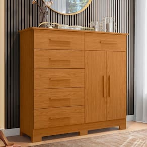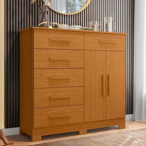 A Cômoda Xangai é um produto completo, possui corrediças telescópicas, 02 portas de bater com prateleiras internas e 06 gavetas para deixar suas roupas muito mais organizadas.