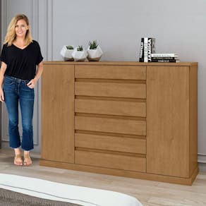 A cômoda Vedra oferece luxo e organização com 2 portas e 7 gavetas espaçosas. Seu design refinado e acabamento premium destacam-se, proporcionando elegância e funcionalidade ao seu espaço. Escolha a Cômoda Vedra para uma solução completa e sofisticada de armazenamento. Produto Montado: Sim Acabamento da Gaveta: Pintura Acabamento da Porta: Pintura Acabamento da Prateleira: Pintura Ambiente Principal: Quarto codigo_ean: 7909903497968 Complexidade da Montagem: Alta: deve ser montado por um montador especializado Cor: Amêndoa Clean Cor do Produto: Amêndoa Clean Escala de Brilho: Fosco Escala de Brilho da Gaveta: Fosco Escala de Brilho da Porta: Fosco Escala de Brilho da Prateleira: Fosco Gaveta com Chave: Sim Itens Inclusos: 1 Cômoda, Kit Ferragem e Manual de Montagem. Linha ou Coleção: Vedra Manual de Montagem e Instalação: https://product-hub-prd.madeiramadeira.com.br/880917/documents/6ed9a746-1d60-4190-aece-e076acd63775ontagemcomodavedra7gav2pts.pdf Material da Gaveta: MDP Material da Porta: MDP Material da Prateleira: MDP Material do Fundo: HDF Material Principal: MDP Necessita Montagem: Sim Origem do Produto: Nacional Peso: 84,28 kg Peso Máximo por Gaveta: 6 kg Peso Máximo por Prateleira: 5 kg Possui Espelho: Não Possui Nichos: Não Possui Pés: Não Possui Portas: Sim Possui Prateleiras: Sim Quantidade de Gavetas: 07 Gavetas Quantidade de Prateleiras: 03 Prateleiras Recomendações de Uso, Manutenção e Limpeza: Limpar somente com pano macio e seco, não colocar diretamente em incidência da luz solar, não colocar em lugar úmido. Sapatas Niveladoras: Não Sistema de Montagem: Parafusos e Cavilhas. Suporta Até (kg): 55 kg Tipo de Corrediça da Gaveta: Metálica Telescópica Tipo de Dobradiça/Corrediça da Porta: Metálica Tipo de Porta: Bater Tipo de Puxador da Gaveta: Embutido Tipo de Puxador da Porta: Embutido
