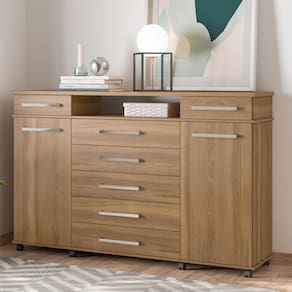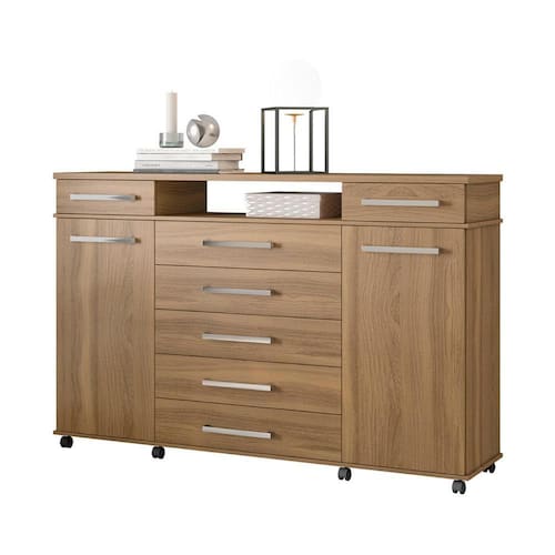 Cômoda 2 Portas 7 Gavetas com Rodízios Multimóveis CR40117 - Marrom Cacau