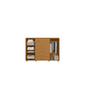 A Cômoda Fontana é moderna e robusta. Possui 7 gavetas com corrediças telescópicas, sendo as duas menores com chaves e 2 portas, uma com cabideiro e outra com prateleiras. Um produto bem distribuído e completo que irá compor seu quarto. Produto Montado: Sim Acabamento da Gaveta: Pintura UV Acabamento da Porta: Pintura UV Acabamento da Prateleira: Pintura UV Acabamento dos Pés: Pintura Altura dos Pés: 5 Altura Máxima dos Pés: 5.0000 Ambiente Principal: Quarto codigo_ean: 7908141229973 Complexidade da Montagem: Alta: deve ser montado por um montador especializado Cor: Cinamomo Cor do Produto: Cinamomo Cor Interna: Cinamomo Escala de Brilho: Fosco Escala de Brilho da Gaveta: Fosco Escala de Brilho da Porta: Fosco Escala de Brilho da Prateleira: Fosco Gaveta com Chave: Sim Informações Complementares: As duas gavetas menores com chaves e suportam até 3 Kg. Itens Inclusos: 1 Cômoda, Kit Ferragens e Manual de Montagem Linha ou Coleção: Albatroz Manual de Montagem e Instalação: https://product-hub-prd.madeiramadeira.com.br/885738/documents/ccb3d933-7455-4556-8b31-58e3f0d9afe0655esquema112comodafontana.pdf Material da Gaveta: MDP Material da Porta: MDP Material da Prateleira: MDP Material do Fundo: HDF Material do Puxador da Gaveta: MDF Material do Puxador da Porta: MDP Material dos Pés: ABS Material Principal: MDP Necessita Montagem: Sim Origem do Produto: Nacional Pés Reguláveis: Não Peso: 71,1 kg Peso Máximo por Gaveta: 5 kg Peso Máximo por Prateleira: 5 kg Possui Espelho: Não Possui Nichos: Não Possui Pés: 08 Possui Portas: Sim Possui Prateleiras: Sim Possui Rodízio: Não Quantidade de Gavetas: 07 Gavetas Quantidade de Prateleiras: 02 Prateleiras Recomendações de Uso, Manutenção e Limpeza: Limpar com flanela ou pano macio seco, não utilizar produtos abrasivos, desengordurantes, álcool ou solvente. Não expor o produto diretamente á luz solar e á umidade. Sapatas Niveladoras: Não Sistema de Montagem: Parafusos, Cavilhas e Minifix. Suporta Até (kg): 71 kg Tipo de Corrediça da Gaveta: Metálica Telescópica Tipo de Dobradiça/Corrediça da Porta: Metálica Tipo de Porta: Bater Tipo de Puxador da Gaveta: Externo Tipo de Puxador da Porta: Externo