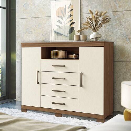 Cômoda 2 Pt E 4 Gv Com Pés Havana Master Santos Andirá Jatoba/areia A Comoda Master e de um espaco incrivel para o seu quarto, seja ele de casal, solteiro ou juvenil! Sem falar em seu design: muito pratico. Possui 2 portas, uma porta com cabideiro em aluminio, para pendurar: calcas, camisas, camisetas...e a outra porta com prateleira para guardar sapatos, caixas, decoracao e demais objetos! Suas 4 gavetas deslizam sobre corredicas metalicas telescopicas com suavidade para guardar suas roupas com muita organizacao. E ainda possui espaco para colocar aparelhos eletronicos e claro, para sua comodidade um aparelho de TV sobre o tampo. Sao muitas funcoes em um so movel. Todo quarto precisa ter essa comoda! Caracteristicas Estrutura: MDP 12mm e 15mm Acabamento: Pintura UV e Verniz Quantidade de Portas: 2 de Bater Tipo de Dobradicas/Trilhos: Dobradicas Metalicas Simples Quantidade de Gavetas: 4 Tipo de Corredicas: Metalicas Telescopicas Tipo de Puxadores: Plastico ABS Quantidade e Tipo de Cabideiros: 1 em Aluminio Quantidade de Prateleiras: 1 Material dos Pes: 6 Pes em PVC Suporte ate: 30kg no tampo, 10kg no nicho, 5Kg na prateleira e 3kg por gaveta Sistema de Montagem: Cavilhas, Parafusos e Minifix Itens Inclusos: 1 Comoda, Kit ferragens e Manual de montagem Garantia de Fabrica: 3 meses Manutencao: Nao limpar com alcool ou qualquer outro produto quimico, utilize somente pano seco ou levemente umedecido.