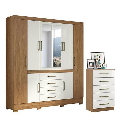 Cômoda 2014140 e Guarda Roupa Casal Nápole 2045149 Atacama Off White - Aramóveis