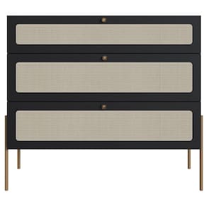 A Cômoda 3 Gavetas Oslo é confeccionada em MDP com acabamento BP, pés metálicos e aplique de tela sintética nas gavetas. Móvel multifuncional, conta com três gavetas para guardar acessórios e roupas tornando o espaço mais organizado. Traz como característica um traço artesanal, suave e acolhedor. Com design escandinavo minimalista, remete em suas linhas retas a simplicidade, charme e funcionalidade que sua casa merece. Composta com uma paleta de cores neutras, Nero é um acabamento ebanizado atemporal, para quem deseja fugir do tradicional sem perder a nobreza, sofisticação e elegância da madeira, tornando-se assim a opção ideal para um ambiente com toque sofisticado e ao mesmo tempo aconchegante.