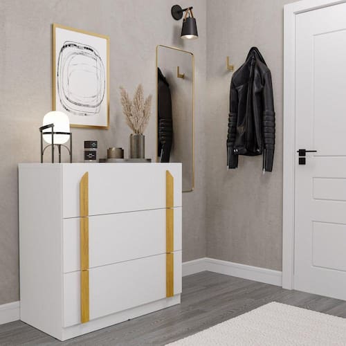 A Cômoda Quartzo possui design “conceitual moderno” em linhas retas. Seus puxadores alinhados verticalmente além de funcionais dão ao móvel um ar de sofisticação e elegância, as gavetas são grandes e com corrediças telescópicas que possibilitam a sua abertura total, e as tornam mais resistentes. Ela fica perfeita associada ao Guarda Roupa Quartzo, ambos pensados para compor belíssimos ambientes. Produto Montado: Sim Acabamento da Gaveta: Pintura UV Ambiente Principal: Quarto codigo_ean: 7909903045855 Complexidade da Montagem: Média: pode ser montado por mais de uma pessoa e/ou necessite de maior conhecimento para montagem Cor: Branco Cor do Produto: Branco Cor Interna: Branco Escala de Brilho: Fosco Escala de Brilho da Gaveta: Fosco Gaveta com Chave: Não Itens Inclusos: 1 Cômoda e Manual de Montagem Linha ou Coleção: Quartzo Manual de Montagem e Instalação: https://product-hub-prd.madeiramadeira.com.br/729302/documents/a9b1e2f2-e6ae-456e-a11d-8d1db89944cd0COMODAQUARTZOPAGINAPAGINA.pdf Material da Gaveta: MDP Material do Fundo: HDF Material do Puxador: MDF Material do Puxador da Gaveta: MDF Material do Puxador da Porta: MDF Material dos Pés: MDP Material Principal: MDP Necessita Montagem: Sim Origem do Produto: Nacional Pés Reguláveis: Não Peso: 39,5 kg Peso Máximo por Gaveta: 5 kg Possui Espelho: Não Possui Nichos: Não Possui Pés: Rodapé Possui Portas: Não Possui Prateleiras: Não Possui Rodízio: Não Quantidade de Gavetas: 03 Gavetas Recomendações de Uso, Manutenção e Limpeza: Limpar com flanela ou pano macio seco, não utilizar produtos abrasivos, desengordurantes, álcool ou solvente. Não expor o produto diretamente à luz solar e à umidade. Sapatas Niveladoras: Não Sistema de Montagem: Parafusos, Cavilhas e Minifix Suporta Até (kg): 25 kg Tipo de Corrediça da Gaveta: Metálica Telescópica Tipo de Puxador da Gaveta: Externo Ean: 7909903045855