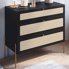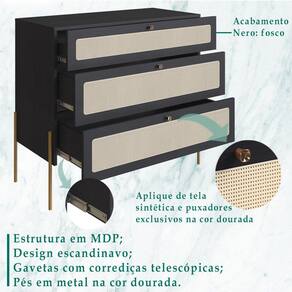 Cômoda 28934, Linha Oslo Artesano. Traz como característica um traço artesanal, suave e acolhedor. Possui estrutura em MDP de 15mm, acabamento em pintura BP na cor Hanover (Fosco), e Pés de tubo metálico em aço com pintura epóxi na cor dourada. Composta por 03 gavetas com corrediças telescópicas garantindo um abre e fecha leve e suave, puxadores de poliestireno na cor Dourado, aplique de tela sintética (PVC com poliéster), fixada na parte externa das gavetas, as extremidades dos pés possuem ponteiras plásticas para evitar atrito do móvel com o piso, conta com sistema anti-tombamento, afim de evitar acidentes, móvel com design escandinavo minimalista, é a opção ideal para um ambiente com toque sofisticado e ao mesmo tempo aconchegante. Mais produtos da Linha Oslo, você encontra em nosso site, podendo fazer a composição completa para sua casa, são diversos itens com design prático e funcional para tornar a vida mais facil e a casa mais alegre. Este móvel chegará em sua casa separado em 02 volumes.