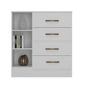Além das gavetas, a cômoda possui uma porta que pode ser aberta para revelar um espaço interno com 2 prateleira para guardar itens adicionais. Conta com uma superfície plana podendo ser usada como penteadeira ou expositor de objetos decorativos. Produzida em MDP com pintura UV, possui 4 gavetas com corrediças metálicas (permite um deslize mais seguro e suave). Acabamento da Gaveta: Pintura UV Acabamento da Porta: Pintura UV Acabamento da Prateleira: Pintura UV Ambiente Principal: Quarto Complexidade da Montagem: Média: pode ser montado por mais de uma pessoa e/ou necessite de maior conhecimento para montagem Cor: Branco Brilho Cor do Produto: Branco Brilho Cor Interna: Branco Brilho Escala de Brilho: Semi-Brilho Escala de Brilho da Gaveta: Semi-Brilho Escala de Brilho da Porta: Semi-Brilho Escala de Brilho da Prateleira: Semi-Brilho Gaveta com Chave: Não Itens Inclusos: Cômoda 4 gavetas 1 Porta + Manual de Montagem Linha ou Coleção: Linha Lite Manual de Especificação Técnica: https://product-hub-prd.madeiramadeira.com.br/914954/documents/e157469c-9b7d-4d2b-a94a-fd31932fbc892049113374317183727993379.pdf Manual de Montagem e Instalação: https://product-hub-prd.madeiramadeira.com.br/914954/documents/a96768b0-e92d-4930-915f-e1f920b4bbf52049112374317183727904559.pdf Material da Gaveta: MDP Material da Porta: MDP Material da Prateleira: MDP Material do Fundo: MDF Material do Puxador da Gaveta: PVC Material do Puxador da Porta: PVC Material Principal: MDP Necessita Montagem: Sim Origem do Produto: Nacional Peso: 28 kg Peso Máximo por Gaveta: 4 kg Peso Máximo por Prateleira: 2 kg Possui Espelho: Não Possui Nichos: 03 Possui Pés: Não Possui Portas: Sim Possui Prateleiras: Sim Quantidade de Gavetas: 04 Gavetas Quantidade de Prateleiras: 03 Prateleiras Recomendações de Uso, Manutenção e Limpeza: Limpeza apenas com um pano úmido. Não utilizar produtos químicos ou abrasivos. Sapatas Niveladoras: Sim Sistema de Montagem: Parafusos, Pregos Suporta Até (kg): 20 kg Tipo de Corrediça da Gaveta: Metálica Tipo de Dobradiça/Corrediça da Porta: Metálica Tipo de Porta: Bater Tipo de Puxador da Gaveta: Externo Tipo de Puxador da Porta: Externo