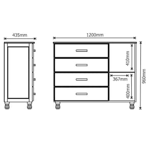 Dimensões da Cômoda 4 Gavetas em Madeira Maciça 120 cm: