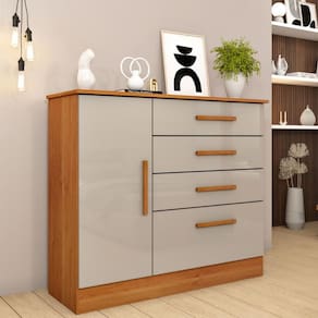 Características: Estrutura em MDP 1 Porta 4 Gavetas Puxadores das gavetas em MDF 1 Prateleira Corrediças telescópicas