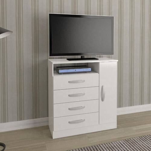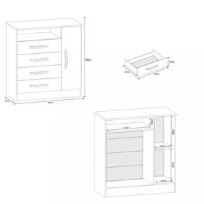 Características: Estrutura em MDP 4 Gavetas 1 Porta Corrediça metálica Acabamento em UV 1 Prateleira interna