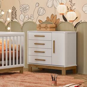 Cômoda Infanti 4 Gavetas 1 Porta Q Encanto Slim Qmovi A Cômoda Sapateira com 1 Porta e 4 Gavetas Q Encanto Slim, é perfeita para quem procura um móvel charmoso e funcional para o quarto da criança. Possui quatro gavetas com excelente profundidade e uma repartição que serve como sapateira, proporcionando ainda mais organização para itens de vestuário e demais objetos.