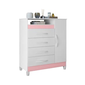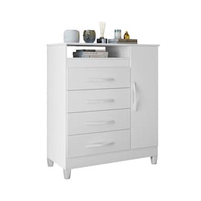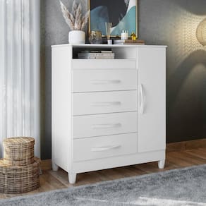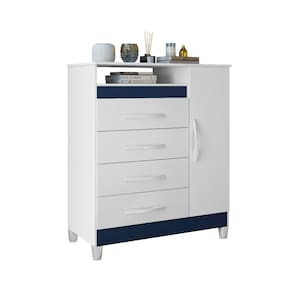 Cômoda 4 Gavetas 1 Porta Flex Turquesa Albatroz - Branco
