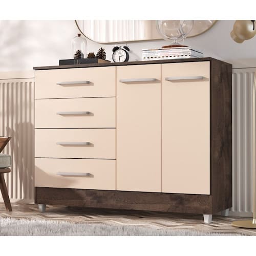 CÔMODA GISELE| Com 4 gavetas e 2 portas com 1 prateleira, dispõe de um design sofisticado é própria para pessoas exigentes com organização. As gavetas possuem CORREDIÇAS METÁLICAS, fazendo assim com que a gaveta não caia na hora que você for utilizar, evitando acidentes com crianças. O móvel suporta pesos de até 7kg em suas gavetas e 20kg no tampo suficiente para acomodar televisores, além disso acompanha pezinhos para melhor limpeza e durabilidade do produto. As gavetas são espaçosas e comportam um bom volume de roupas e acessórios em seu interior. Possui acabamento Touch Alto-Relevo ou Alto Brilho UV e Semibrilho parte interna. Tem um design moderno que ao mesmo tempo atende muito bem as reais necessidades de uma ou duas pessoas. Altura 0,90m Largura 1,10m Profundidade 0,40m Peso 33kg Atenção! Confira as dimensões deste produto e certifique-se de que passará normalmente por supostos elevadores, portas, escadas e/ou corredores de sua moradia; As imagens são ilustrativas, eletrodomésticos e demais objetos que compõem o cenário, não fazem parte do anúncio; Sobre a tonalidade das cores, poderá ocorrer alterações conforme a configuração do seu monitor. Orientamos que a montagem e instalações do produto seja realizado por um técnico de sua confiança, após a sua entrega. Não nos responsabilizamos pela instalação/montagem. Fornecemos somente assistências, por defeitos de fábrica. Marca: Não Informado