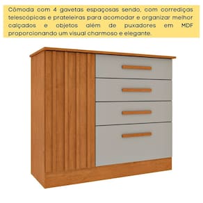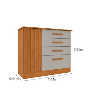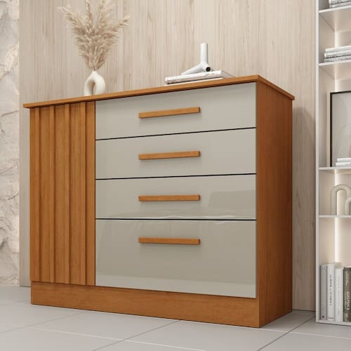 Cômoda 4 Gavetas 104cm Ripada Nova York Cinamomo/Off White - Bege