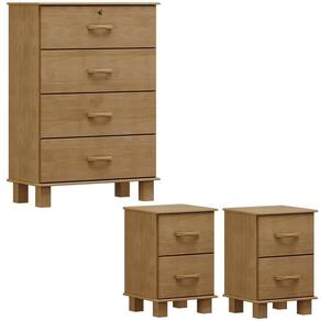 Modelo: Comoda 4 Gavetas 2 Mesas de Cabeceira Madeira Maciça Milani Store