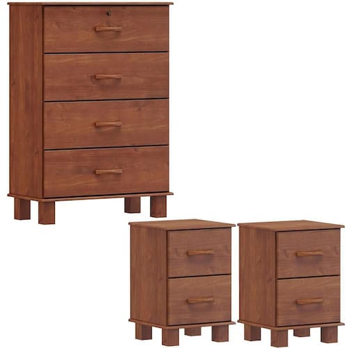 Modelo: Comoda 4 Gavetas 2 Mesas de Cabeceira Madeira Maciça Milani Store