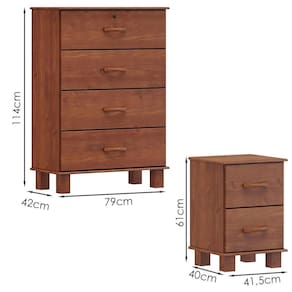O conjunto Mesa de Cabeceira e Cômoda foi projetado para quem busca aliar sofisticação, funcionalidade e durabilidade no mobiliário. Ambas são fabricadas em madeira maciça, com acabamento em pintura acetinada com verniz PU e UV, que realça a beleza natural da madeira e garante resistência no uso diário. A mesa de cabeceira conta com 2 gavetas com corrediças metálicas que suportam até 5kg de peso distribuído, ideal para manter seus itens sempre à mão, enquanto a cômoda, com 79 cm de largura, oferece 4 gavetas espaçosas que facilitam a organização de roupas e acessórios, também com corrediças metálicas para maior praticidade. Os puxadores e pés em madeira complementam o design com um toque de charme e leveza. Estes móveis chegarão em sua casa separados em 02 volumes.