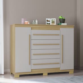 Cômoda 4 Gavetas 2 Portas com Pés Valência Poquema. Para trazer essa facilidade para sua casa, aposte no modelo Valência, que possui 4 gavetas e 2 portas. Com compartimentos suficientes para acomodar suas roupas de forma organizada, ela é perfeita para quem busca funcionalidade. Além de funcional, a cômoda Valência se destaca pelo design minimalista, que ajuda a personalizar o dormitório.