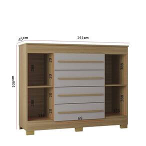 Características: Estrutura MDP e MDF Acabamento em Pintura U.V 4 Gavetas Corrediças Telescópico 2 Portas Dobradiças Metálicas Puxadores de MDF Pés de Plástico Prateleira suporta 5kg Gaveta suporta 3kg