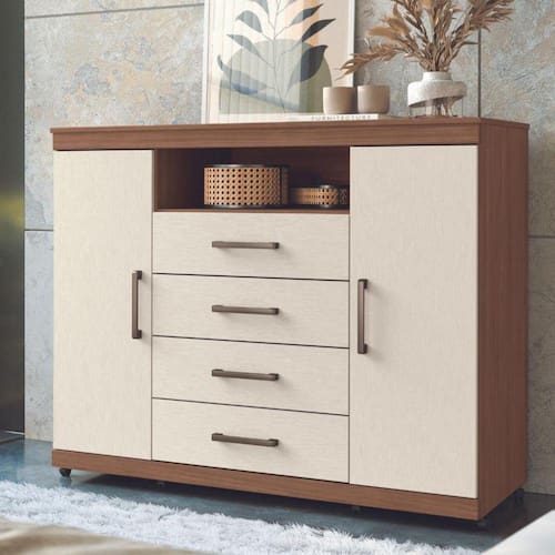Renove o seu quarto com a incrível Cômoda Havana Master da Santos Andirá, um móvel espaçoso e versátil projetado para atender às necessidades. Além de oferecer um espaço generoso, esta cômoda impressiona com seu design prático e funcional. Com duas portas distintas: uma porta equipada com cabideiro em alumínio, ideal para pendurar calças, camisas, camisetas e muito mais; enquanto a outra porta conta com prateleiras para guardar sapatos, caixas, decorações e outros objetos essenciais do seu dia a dia. Suas quatro amplas gavetas deslizam suavemente sobre corrediças metálicas, garantindo um armazenamento organizado e de fácil acesso para suas roupas. Renove sua decoração e desfrute de praticidade e estilo incomparáveis. Não deixe seu quarto sem essa cômoda!