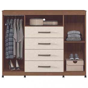 Características: Estrutura em MDP 4 Gavetas Corrediças metálicas 2 Portas Cabideiros em alumínio Tampo suporta até 5kg