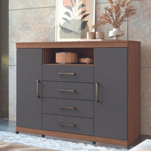 Cômoda 4 Gavetas 2 Portas com Rodizio Havana Master Santos Andira - Grafite