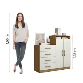 MEDIDAS:: A = 115 cm L = 120 cm P = 45 cm | PESO:: 43,85 KG | PESO SUPORTADO:: 45KG | PRATELEIRAS SUPORTAM ATÉ:: 8 KG | GAVETAS SUPORTAM ATÉ:: 5 KG | MODELO:: LONDRES | MARCA:: Aramóveis | PINTURA:: UV | ACABAMENTO:: Verniz | MATERIAL DA ESTRUTURA:: MDP | ESPESSURA DO MATERIAL DA ESTRUTURA:: 12mm e 15mm | PORTAS:: 2 | TIPO DE PORTA:: Bater | DOBRADIÇAS:: Metálicas | GAVETAS:: 4 | CORREDIÇAS:: Metálicas | PRATELEIRAS:: 3 | PUXADORES:: 6 | MATERIAL DOS PUXADORES:: PVC | GARANTIA:: 03 MESES | DIFERENCIAL:: 4 gavetas e 2 portas para melhor organização, acabamento em verniz, garantindo a conservação do móvel e dando resistência e durabilidade a vida útil do produto. | ITENS INCLUSOS:: 1 Cômoda, 1 Manual de montagem, 1 Kit Parafusos | INSTRUÇÕES E CUIDADOS:: Para maior durabilidade, recomendável que a limpeza dos móveis seja feita com pano limpo e levemente umedecido em água e sabão neutro. Em seguida, deverá ser passado um pano limpo e seco. | EMBALAGEM:: 1 Cor: Atacam/Off