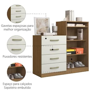 Você busca por um móvel que una praticidade, e elegância? A Cômoda com sapateira embutida Londres, é ideal para quem valoriza a organização sem abrir mão do design moderno. Composta por 4 gavetas espaçosas que garantem suavidade ao abrir e fechar, e 2 portas com prateleiras internas para armazenar todos os seus objetos pessoais, roupas e até mesmo sapatos. Seu design moderno e funcional se encaixa perfeitamente em qualquer ambiente, adicionando um toque de sofisticação ao seu espaço.