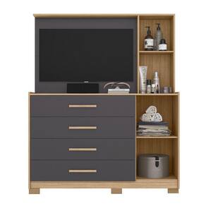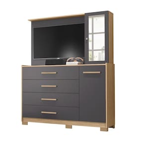 Características: 1 Porta superior com chave 1 Porta com espelho 4 Gavetas Painel para TV de até 43 polegadas Corrediças telescópicas Estrutura MDP
