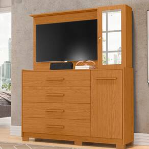 Características: 1 Porta superior com chave 1 Porta com espelho 4 Gavetas Painel para TV de até 43 polegadas Corrediças telescópicas Estrutura MDP