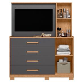 Características: 1 Porta superior com chave 1 Porta com espelho 4 Gavetas Painel para TV de até 43 polegadas Corrediças telescópicas Estrutura MDP