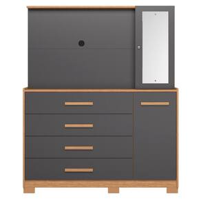 A Cômoda Ilhabela é ideal para quem precisa de um produto completo para seu lar. Possui um painel que suporta TV de até 43 polegadas, 4 gavetas espaçosas com corrediças telescópicas, sapateira inferior e armário lateral com espelho e chave para guardar pertences