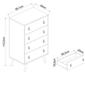 Características: Corrediças Metálicas para um deslize suave. Pés em Madeira Maciça para durabilidade e elegância. Puxadores em Couro Sintetístico para um toque de luxo. Frentes em Melamina BP para resistência e beleza duradoura.