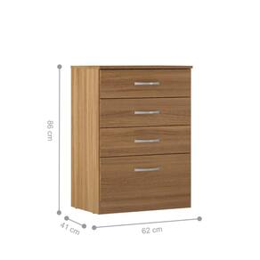 Compacta, ela conta com 4 gavetas, todas com corrediças metálicas telescópicas, sendo que a última é de maior profundidade e pode ser usada para guardar roupa de cama, toalhas ou casacos dobrados