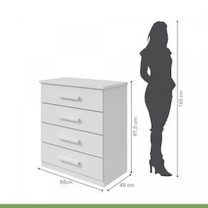 Você precisa de um lugar para guardar aquelas comprinhas que fez ontem? A Cômoda 4 Gavetas Baião é muito espaçosa e completa o ambiente com o estilo moderno dos puxadores longos cromados. As corrediças metálicas das gavetas permite que elas deslizem de forma suave e silenciosa. Com acessórios de excelente qualidade, a Cômoda 4 Gavetas Baião é fabricada em MDP. Aliado a isso tudo, temos a praticidade e ter mais espaço para guardar as coisas no quarto em uma cômoda cheia de estilo. Produto Montado: Sim Acabamento da Gaveta: Pintura Ambiente Principal: Quarto codigo_ean: 7909903005965 Complexidade da Montagem: Alta: deve ser montado por um montador especializado Cor: Branco Cor do Produto: Branco Escala de Brilho: Fosco Escala de Brilho da Gaveta: Fosco Gaveta com Chave: Não Itens Inclusos: 1 Cômoda, Kit Ferragens e Manual de Montagem Manual de Montagem e Instalação: https://product-hub-prd.madeiramadeira.com.br/714450/documents/babd584b-a6bd-4a12-934c-7d8aec1e373d0a4prospectocomodabaiaonew.pdf Material da Gaveta: MDP Material do Fundo: HDF Material do Puxador: MDF Material do Puxador da Gaveta: MDF Material do Puxador da Porta: MDF Material Principal: MDP Necessita Montagem: Sim Origem do Produto: Nacional Peso: 39 kg Peso Máximo por Gaveta: 6 kg Possui Espelho: Não Possui Nichos: Não Possui Pés: Não Possui Portas: Não Possui Prateleiras: Não Possui Trocador: Não Quantidade de Gavetas: 04 Gavetas Recomendações de Uso, Manutenção e Limpeza: Limpar com flanela limpa e seca. Não usar produtos abrasivos. Sapatas Niveladoras: Não Sistema de Montagem: Parafusos e Cavilhas Suporta Até (kg): 40 kg Tipo de Corrediça da Gaveta: Metálica Telescópica Tipo de Puxador da Gaveta: Externo Ean: 7909903005965