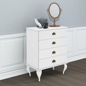 A Cômoda clássica 4 gavetas, CL 4009, Possui sua estrutura em MDP 15mm, 3 mm costas, pé madeira, puxador zamack, traz o charme e elegância da linha clássica para sua casa. Se adapta a qualquer ambiente. Acabamento da Gaveta: Pintura UV Altura dos Pés: 22 cm Ambiente Principal: Quarto Complexidade da Montagem: Média: pode ser montado por mais de uma pessoa e/ou necessite de maior conhecimento para montagem Cor: Branco Cor do Produto: branco Cor Interna: branco Escala de Brilho: Fosco Gaveta com Chave: Não Itens Inclusos: 1 Cômoda, Kit Ferragens e Manual de Montagem Manual de Montagem e Instalação: https://cdn2.madeiramadeira.com.br/atributo/movelbento/905497-cl-4009.pdf Material da Gaveta: MDP Material do Fundo: MDF 3mm Material dos Pés: Madeira Maciça Material Principal: MDP Necessita Montagem: Sim Origem do Produto: Nacional Peso: 26 kg Peso Máximo por Gaveta: 3 kg Possui Espelho: Não Possui Nichos: Não Possui Pés: 04 Possui Portas: Não Possui Prateleiras: Não Possui Rodízio: Não Recomendações de Uso, Manutenção e Limpeza: Pano levemente umedecidao com água Sapatas Niveladoras: Não Sistema de Montagem: Parafuso, cavilha e minifix Suporta Até (kg): 30 kg Tamanho: Tipo de Corrediça da Gaveta: Metálica Simples Tipo de Madeira Maciça dos Pés: Pinus Tipo de Puxador da Gaveta: Externo