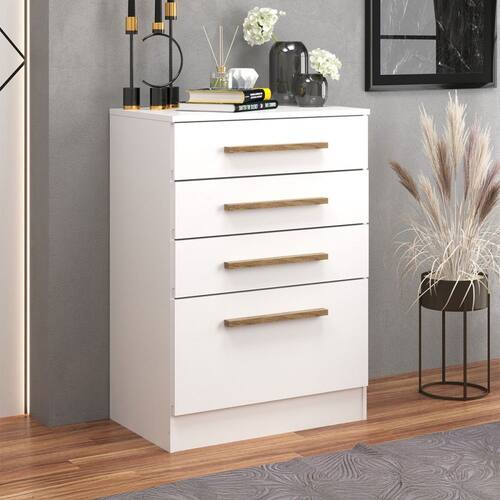 O(a) Cômoda 4 Gavetas Cm1043 Branco Brilho - Decibal é produzido em MDP na escala de brilho Brilho e Fosco, e possui um grau de dificuldade de montagem: Médio.