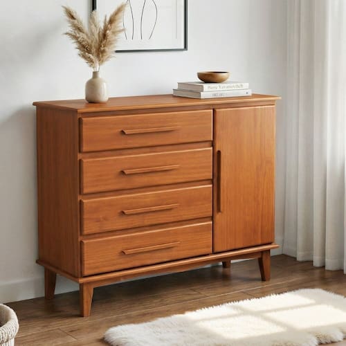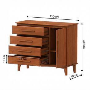 Transforme a organização do seu quarto com a Cômoda em Madeira Maciça de Pinus, uma peça que une funcionalidade e a elegância atemporal da madeira natural. Composta por 4 gavetas espaçosas e 1 porta com prateleiras internas removíveis, este móvel oferece a versatilidade necessária para acomodar roupas e acessórios de diversos tamanhos de forma prática. Equipada com corrediças telescópicas, as gavetas deslizam suavemente, garantindo um manuseio silencioso e duradouro. O acabamento em PU não apenas realça a beleza da madeira maciça, mas também proporciona uma camada extra de proteção e resistência para o dia a dia. Ideal para quem busca otimizar o espaço sem abrir mão de um design clássico e robusto. Adquira agora e eleve o padrão de organização e estilo da sua casa! Produto Montado: Sim Acabamento da Gaveta: Verniz Acabamento da Porta: Verniz Acabamento da Prateleira: PU Acabamento dos Pés: Verniz Altura dos Pés: 19 cm Altura Máxima dos Pés: 19.0000 Ambiente Principal: Quarto codigo_ean: 7900288335159 Complexidade da Montagem: Baixa: pode ser montado por uma pessoa sozinha Cor: Castanho Claro Cor do Produto: Castanho Claro Cor do Puxador: Marrom Cor Flex: Não Cor Interna: Cor de Madeira Escala de Brilho: Fosco Escala de Brilho da Gaveta: Fosco Escala de Brilho da Porta: Fosco Escala de Brilho da Prateleira: Fosco Gaveta com Chave: Não Informações Complementares: Fabricada em Madeira Maciça Pinus Itens Inclusos: 1 Cômoda, Kit Ferragens e Manual de Montagem Linha ou Coleção: MÓVEIS SARAIVA Manual de Montagem e Instalação: https://product-hub-prd.madeiramadeira.com.br/558592271/documents/1abad427-3ce0-47c7-96fd-7cef1576243273382710340317706794336246.pdf Marca: Móveis Saraiva Material da Gaveta: Madeira Maciça Material da Porta: Madeira Maciça Material da Prateleira: Madeira Maciça Material do Puxador da Gaveta: Madeira Maciça Material do Puxador da Porta: Madeira Material dos Pés: Madeira Maciça Material Principal: Madeira Maciça Montagem Flex: Não Necessita Montagem: Sim Origem do Produto: Nacional Pés Reguláveis: Não Peso: 38 kg Peso Máximo por Gaveta: 15 kg Peso Máximo por Prateleira: 20 kg Porta Janelada: Não Possui Espelho: Não Possui Nichos: Não Possui Pés: 04 Possui Portas: Sim Possui Prateleiras: Sim Possui Rodízio: Não Quantidade de Gavetas: 04 Gavetas Quantidade de Prateleiras: 02 Prateleiras Recomendações de Uso, Manutenção e Limpeza: Não utilizar lustra Móveis, Limpeza pano seco Sapatas Niveladoras: Não Sistema de Montagem: Parafusos e Cavilhas Suporta Até (kg): 50 kg Tipo de Cômoda: Adulto Tipo de Corrediça da Gaveta: Metálica Telescópica Tipo de Dobradiça/Corrediça da Porta: Simples Tipo de Madeira Maciça: Pinus Tipo de Madeira Maciça da Gaveta: Pinus Tipo de Madeira Maciça da Porta: Pinus Tipo de Madeira Maciça da Prateleira: Pinus Tipo de Madeira Maciça dos Pés: Pinus Tipo de Porta: Abrir Tipo de Puxador da Gaveta: Externo Tipo de Puxador da Porta: Externo
