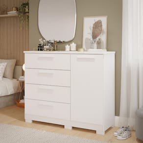 A cômoda é um móvel prático e super funcional! A Cômoda Malu da Panan é grande, possui gavetas espaçosas e uma porta com prateleiras para melhor acomodar suas peças! As gavetas contam com corrediça telescópica, proporciona abertura suave, total e segura! Produzida com materiais de qualidade trazendo durabilidade ao móvel!