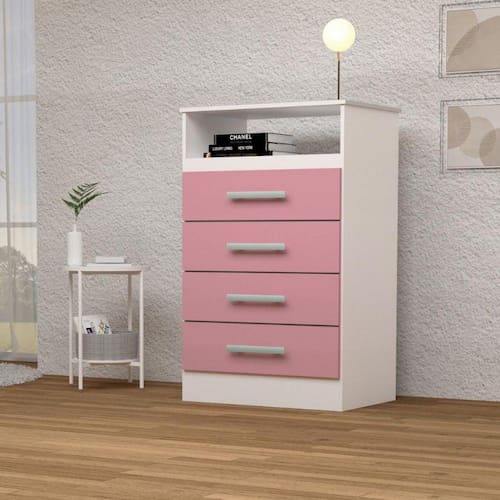 A Cômoda Jessica é perfeita para completar o seu ambiente. Contando com quatro gavetas, oferece um amplo espaço de armazenamento de seus pertences, da melhor maneira. Com opção de montagem flex, se adapta a qualquer estilo de decoração.
