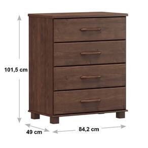 Características: Estrutura 100% em Madeira Maciça de Pinus Pintura Acetinada Verniz PU e UV Amplo espaço para armazenamento 04 Gavetas com Corrediças Telescópicas Puxadores e Pés em Madeira Maciça Peso Máximo Suportado pelas Gavetas 05kg Distribuídos Isolamento de Peças com Manta de Polietileno Expandido (Isomanta)