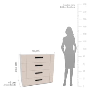 A cômoda 4 gavetas Lisboa, da Politorno Móveis, é uma opção perfeita para quem busca praticidade e elegância em um único móvel. Com 83,8 cm de altura, 90 cm de largura e 46 cm de profundidade, oferece o espaço ideal para organizar roupas e acessórios de forma eficiente. Fabricada em MDP/MDF, com acabamento em pintura UV, garante alta durabilidade e resistência. Seu design sofisticado e atemporal combina com diferentes estilos de decoração, trazendo um toque refinado ao ambiente. As gavetas contam com corrediças telescópicas para um deslizamento suave e os puxadores externos proporcionam praticidade no manuseio. Produto Montado: Sim Acabamento da Gaveta: Pintura UV Acabamento dos Pés: Polipropileno Altura dos Pés: 0,37 cm Altura Máxima dos Pés: 0.3700 Ambiente Principal: Quarto codigo_ean: 7900288111630 Complexidade da Montagem: Média: pode ser montado por mais de uma pessoa e/ou necessite de maior conhecimento para montagem Cor: Branco/Creme Cor do Produto: Branco/Creme Cor do Puxador: Preto Cor Interna: Branco Escala de Brilho: Semi-Fosco Escala de Brilho da Gaveta: Semi-Fosco Gaveta com Chave: Não Itens Inclusos: 1 Cômoda, Kit de Ferragens e Manual de Montagem. Linha ou Coleção: Lisboa Manual de Especificação Técnica: https://product-hub-prd.madeiramadeira.com.br/984328/documents/f95b54af-9e7b-4793-8557-48d06efd06942787162622417437789197603.pdf Manual de Montagem e Instalação: https://product-hub-prd.madeiramadeira.com.br/984328/documents/4f4cfd24-9435-4d02-b717-83185a2618da2787161622417437789175781.pdf Marca: Politorno Material da Gaveta: MDF/MDP Material do Fundo: MDF/MDP Material do Puxador da Gaveta: MDF Material dos Pés: Plástico Material Principal: MDF/MDP Necessita Montagem: Sim Origem do Produto: Nacional Pés Reguláveis: Não Peso: 21,02 kg Peso Máximo por Gaveta: 5 kg Possui Espelho: Não Possui Nichos: Não Possui Pés: 04 Possui Portas: Não Possui Prateleiras: Não Possui Rodízio: Não Quantidade de Gavetas: 04 Gavetas Recomendações de Uso, Manutenção e Limpeza: Utilize um pano macio umedecido com água e sabão neutro, seguido de pano seco. Não utilize produtos químicos ou abrasivos para limpeza, pois estes danificam o revestimento do móvel. Sapatas Niveladoras: Sim Sistema de Montagem: Cavilha, Parafuso, Minifix e prego Suporta Até (kg): 10 kg Tipo de Cômoda: Adulto Tipo de Corrediça da Gaveta: Metálica Telescópica Tipo de Puxador da Gaveta: Externo undefined: 984334