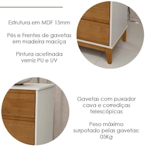 Transforme seu quarto com a Cômoda que une beleza e funcionalidade. Com estrutura em MDF de 15mm, seus pés e frentes de gaveta são confeccionados em madeira maciça, garantindo resistência e durabilidade. O acabamento conta com pintura acetinada em verniz PU e UV, proporcionando um toque suave e proteção extra. O design funcional possui 04 gavetas com puxadores cava e corrediças telescópicas, que proporcionam abertura suave e silenciosa. Funcional e versátil, a cômoda é uma excelente aliada para a organização, com amplo espaço interno ajuda a manter tudo no lugar proporcionando mais praticidade e harmonia ao seu espaço. Este móvel chegará em sua casa separado em 01 volume.
