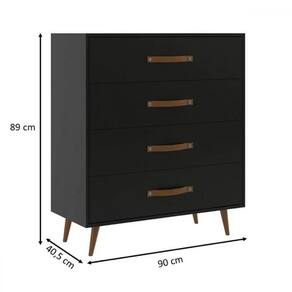 A Cômoda Padua J Carvalho Preta combina praticidade e estilo moderno para seu espaço. Com 4 gavetas espaçosas, proporciona amplo espaço de armazenamento, ideal para organizar roupas, acessórios ou itens diversos de maneira eficiente. O acabamento em preto confere um toque elegante, tornando-a uma peça que se integra perfeitamente a qualquer decoração.