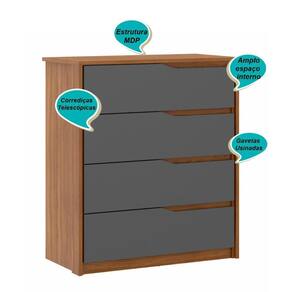 Cômoda 4 Gavetas Parde - Amendola/grafito Amendola/grafito