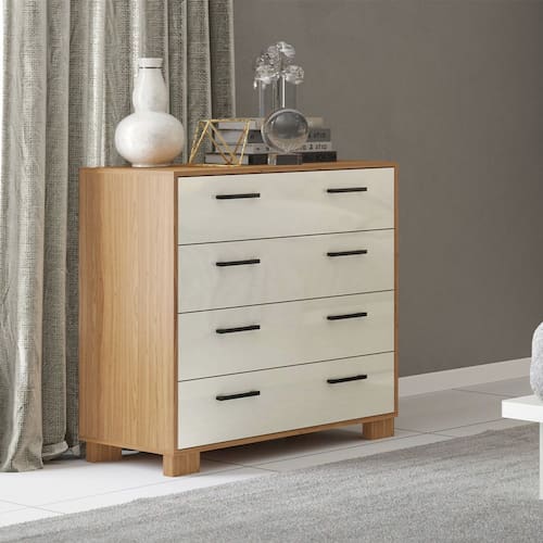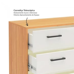 Características: Estrutura 100% MDF Acabamento em Pintura UV 04 Gavetas com Corrediças Telescópicas Pés em MDF Puxadores Plásticos